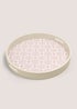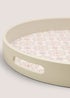 Crafted with precision, this tray boasts a smooth, round wooden edge, that is both sturdy and elegant. The base is adorned with a delicate, intricate pattern in soft hues of red, blue and beige - a design inspired by the timeless beauty of traditional artisan crafts. Whether you're serving refreshments to guests or displaying decorative items in your living space, this tray adds a touch of elegance and sophistication to any setting.