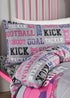 Learn moreGo footy mad this season with this football themed bedding set in vivid shades of pink and purple – it’s a brilliant match for kids who dream of going for goal. And for a big win, why not complete the set with the matching pencil pleat curtains? They’re perfect when the day’s full-time whistle blows.