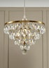 Add a touch of glamour and elegance to your home with the BHS ELIANIS Tiered Easyfit Shade. Featuring a stunning brass frame adorned with cascading glass droplets, this shade creates a dazzling effect when illuminated, adding a luxurious feel to any space. Height 21cm x Width 30cm.