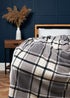 BHS Luxury Warm Grey Check Throw With Faux-Shearling (130x150cm)
