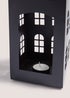 Create a warm and cosy atmosphere in any room with our black tealight lantern. Beautifully crafted in the shape of a house with design features that include an internal tealight holder, a sloping roof, and cut-out windows that the light can shine through, it's sure to make those autumn/winter nights in feel that bit brighter. Dimensions: 30cm.