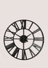 Make your home more versatile with this unique clock design. Detailed with Roman numerals, this slick and stylish piece is finished in black with a timeless round shape. It's sure to spruce up any wall in your home. Dimensions: 60cm x 60cm.