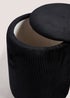 Plush and practical in equal measure, this two-in-one pouffe acts as a footrest and doubles as a space-saving storage solution. Crafted with a black velvet outer and a ribbed texture, the sturdy base and a handy lid provide practicality. It makes the perfect addition to modern living rooms. Dimensions: 33cm x 33cm x 40cm.