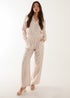 Blue Vanilla Beige Striped Cosy Shirt Set