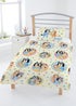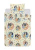 Bring the fun & adventure home with this officially licensed Bluey toddler duvet set. This reversible set features Bluey, the loveable six-year-old Blue Heeler dog, along with her mum Chilli, dad Bandit, and sister Bingo in various framed poses. An essential addition to the bedroom of any fan. Includes one toddler size duvet cover (120 x 150cm) and one toddler size pillowcase (42 x 62cm). 100% cotton. Machine washable at 30°C and can be tumble dried. Fits toddler, junior & cot beds.