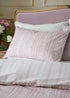 Turn your bedroom becomes a sanctuary of classic beauty and modern luxury. The delicate stripes create a sense of sophistication, while the inserted fancy florals add a touch of opulence to the design. With elegantly piped pillowcases for a refined finish that complements the overall look, making your bed a true centrepiece to your room. Created from easy-care recycled polyester and soft responsibly sourced cotton, blended for everyday use. Bridgerton by Catherine Lansfield has finally arrived. The collection is inspired by the opulence and whimsy of regency era England combined with the modern styling in which Catherine Lansfield is renowned. Made to quality and human-ecological safety standards, in accordance with MADE IN GREEN by OEKO-TEX.
