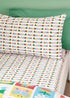 Brighten up your child’s bedroom with our garden-themed bedding set, showcasing a playful collage of flowers, bugs, and mushrooms in bold, cheerful colours. The reverse features a fun wiggly caterpillar pattern, offering a fresh, playful look. Created from easy-care recycled polyester and soft cotton, blended for everyday use.