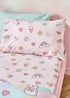 Brighten up your little one's room with our adorable pastel nature-themed fitted sheet, featuring flowers, acorns, stars and clouds on a soft pastel pink background. This super cute design adds a touch of magic and fun to any space. Created from easy-care recycled polyester and soft cotton, blended for everyday use.