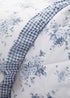 Bring the essence of the countryside into your main bedroom with this charming bedspread, showcasing a delicate blue floral design and frilled edges for added charm. Fully reversible design with a blue gingham pattern provides an additional layer of versatility. Created from easy-care recycled polyester and soft cotton, blended for everyday use.