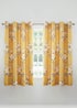 Catherine Lansfield Ochre Yellow Canterbury Floral Lined Eyelet Curtains Two Panels