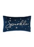 Add some glitz and glam to your holiday décor with this soft to touch velvet sparkle cushion. This stunning cushion features a deep navy base adorned with a sparkle text in a rope texture and sparkly star embroidery, adding a touch of festive elegance to any space. Catherine Lansfield is renowned for style and quality - designed and developed in Great Britain.