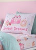 Learn moreTreat your little one to a deliciously fun bedtime with this sweet-themed bedlinen set. Bursting with colourful cakes, ice creams, donuts on a sweet pink background, this design is perfect for any dessert-loving dreamer. Fully reversible, the soft mint green base with sprinkles on the reverse creates a refreshing twist.