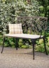 This cast aluminium bench is ideal for a patio or terrace area and would fit easily in any garden. The bench comes with a cream seat cushion for added comfort. It is relatively lightweight, making it easy to move, and requires minimal maintenance, which means it can be left outside all year round. The distinctive, elegant design is classic and timeless.