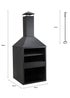 Charles Bentley Black Powder Coated Steel 118cm BBQ & Chimenea (H118cm x W44cm x D44cm)