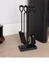 Learn moreThe Conifer Fireside Companion Set combines sleek design with practical functionality, making it an essential addition to your hearth. Its modern straight-line tool stand, anchored by a sturdy rectangular base, provides both stability and a clean, minimalist aesthetic. The set features four individual holders for each tool, ensuring easy access and organisation. Included are a pair of tongs, a poker, a coal shovel, and a brush made from natural coco fibers—each tool crafted with durable materials and designed with ergonomic hooped handles for a comfortable grip. Perfect for tending to your fire on cold nights, the Conifer set not only serves as a reliable companion for managing your fireplace but also enhances the visual appeal of your fireside space. Please Note: Warning: This product will get hot if placed in front or close to an open fire. Please allow to cool, or use protective gloves before handling. Never leave children or pets unsupervised in a room with a lit fire or hot material. A blazing fire should never be left unattended. Care Instructions: This product is best maintained by wiping occasionally with a soft cloth. Do not use any abrasive cleaners. For indoor use only. Features: Four piece fireside companion set Traditional design Compact straight line tool stand shape Hooped handles Rectangular base Powder coated finish Tool stand Includes: 1x coal shovel 1x tongs 1x brush 1x poker 1x tool stand Materials: Iron Natural coco fiber Dimensions: Overall height: 42cm Overall length: 16.5cm Overall width: 9cm Fire poker: 6x1x37cm Coal shovel: 8x3x37cm Brush: 6x6x37cm Tongs: 6x1x37cm Weights: Total: 1.85kg Tool stand: 950g Fire poker: 200g Coal shovel: 250g Brush: 200g Tongs: 300g Colours: Black