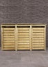 Learn moreA practical addition for any garden, this wide panel triple bin store will keep your wheelie bins safe and secure and your garden tidy. With a contemporary slatted design, this bin store is constructed from high quality FSC natural spruce wood. Designed to fit three 240 litre wheelie bins, this triple bin storage unit features lifting lids for easy disposal of waste. Finished with three front doors for easy access, this storage unit will keep your bins secure as the doors can be locked. This bin store can be painted or stained to prolong the storage units life span. This durable and solid triple bin store will complement any outdoor space.