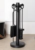 This companion set has a tool stand with a circular base and holders for each of the 4 tools. Comprising a brush made from coco fibers, tongs, a poker and a coal shovel, all your fireside needs are met. The hooped handles, the black matte finish and the traditional design all make for an attractive companion set as well as a practical piece of fireside equipment. Please Note: Warnings: This product will get hot if placed in front or close to an open fire. Please allow to cool, or use protective gloves before handling. Never leave children or pets unsupervised in a room with a lit fire or hot material. A blazing fire should never be left unattended. Features: Four piece fireside companion set with tool stand included Traditional Design Individual Holder For Each Tool Hooped Handles Circular Base Powder coated finish Includes: 1 x Coal Shovel 1 x Tongs 1 x Brush 1 x Poker 1 x Tool Stand Materials: Iron Natural Coco Fiber Brush Dimensions: Overall Product: H40 x 14cm Diameter Fire Poker: 6 x 1 x 37cm Coal Shovel: 8 x 3 x 37cm Brush: 6 x 6 x 37cm Tongs: 6 x 1 x 37cm Weights: Total: 2.2kg Tool Stand: 1.3kg Fire Poker: 200g Coal Shovel: 250g Brush: 200g Tongs: 300g Colours: Black Additional Info.: Care Instructions: This product is best maintained by wiping occasionally with a soft cloth. Do not use any abrasive cleaners. For Indoor Use Only.
