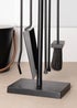 This elegant iron four-piece fireside companion set combines practicality and style, offering essential tools for maintaining a fireplace while adding a timeless charm to your hearth. The set includes a poker, tongs, coal shovel, and brush, all featuring sturdy, ergonomic hooped handles for a secure grip. The brush is made from natural coco fibers, providing durability and effective sweeping without damaging surfaces, while the poker, tongs, and shovel are crafted from heavy-duty iron, ensuring heat resistance and reliability. All tools are neatly arranged on a straight-line tool stand with a stable rectangular base, offering easy access and balance. With a classic black matte finish and a traditional design, this set compliments a range of interior styles, from rustic to modern, making it both functional and aesthetically pleasing by any fireside. Please Note: Warning: This product will get hot if placed in front or close to an open fire. Please allow to cool, or use protective gloves before handling. Never leave children or pets unsupervised in a room with a lit fire or hot material. A blazing fire should never be left unattended. Care Instructions: This product is best maintained by wiping occasionally with a soft cloth. Do not use any abrasive cleaners. For indoor use only. Features: Traditional design Straight line tool stand shape Hooped handles Rectangular base Powder coated finish Tool stand Includes: 1x coal shovel 1x tongs 1x brush 1x poker 1x tool stand Materials: Iron Natural coco fiber Dimensions: Overall height: 61cm Overall length: 20cm Overall width: 13cm Fire poker: 1x6x55cm Coal shovel: 5x12x55cm Brush: 5x10x55cm Tongs: 1x5x55cm Weights: Total: 2.75kg Tool stand: 1.4kg Fire poker: 250g Coal shovel: 400g Brush: 300g Tongs: 450g Colours: Black