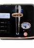 Combining traditional style with modern and sleek features, this toaster will add a touch of luxury to your kitchen. Equipped with a four slice capacity and two variable toast colour controls, you can make sure you toast bread, bagels, waffles and more to your own preference. The defrost feature is perfect for warming frozen bread and the reheat function ensures food is hot when serving (perfect for when you're waiting for other food to be cooked.) Concealed crumb trays at the back mean keeping your toaster clean is hassle free. Also available as a set with our matching kettle. Browse our full range of matching kitchen appliances. Please Note: Finish may vary between kettle and toaster due to the materials of each product. Features: 4 slice capacity Cancel defrost and reheat buttons Adjustable browning control dial with 6 levels Removable crumb tray Cord storage Loading handle Red LED colour indicator Includes: 1x toaster Materials: Stainless Steel Dimensions: H19.2 x L32 x W28.8cm Slots: H11 x L13.8 x W3.8cm Weights: 2.05kg Colours: Black & rose gold Additional Info.: Please clean the exterior with a damp cloth and wash crumb tray with warm water and dry thoroughly