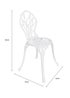 The pretty set is ideal for any size garden, this white bistro set is made from Cast Aluminium and features a tulip design on the chairs. The set would look great on a patio or decking area and would be perfect for enjoying those summer evenings outdoors. Features: Weatherproof (can be kept outside all year round) White finish Tulip design and central hole in the table for an umbrella. Materials: Cast aluminium Dimensions: Table - Dia. 60 x H66cm Chair - H85 x D37 x W42cm Weights: Table: 4.2kg Chair: 3.7kg (Each Additional Info.: Assembly Required: Some self-assembly required
