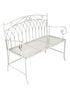 Charles Bentley Wrought Iron Feminine Bench Antique White (H89cm x L104.5cm x W54cm)