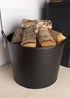 With the capacity to hold up to 4kg of wood, this contemporary and stylish log bucket is perfect for those cold nights when a fire is a must. Its black matte finish, triangular embossed body design and metal handles makes this the ideal fireside accessory. Please Note: Warnings: This product will get hot if placed in front or close to an open fire.Please allow to cool, or use protective gloves before handling.Never leave children or pets unsupervised in a room with a lit fire or hot material.A blazing fire should never be left unattended. Features: Contemporary Design "Triangular" Embossed Body Design Solid Metal Handles Can hold up to 4kg of logs Black powder coated finish Includes: 1 x Small Log Bucket Materials: Iron Dimensions: H37cm x L35cm x W40cm Weights: 1.6kg Colours: Black Additional Info: Care Instructions: This product is best maintained by wiping occasionally with a soft cloth. Do not use any abrasive cleaners. For Indoor Use Only. Some self-assembly required. Full instructions provided.