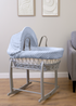Clair de Lune Blue Dimple Wicker Moses Basket With Deluxe Rocking Stand