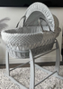 Clair de Lune Grey Waffle Wicker Moses Basket with Deluxe Rocking Stand