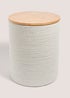 This simple yet stylish design will blend into just about any interior. Offering a place to rest your feet after a long day, as well as a great space-saving solution, it's fashioned with cream cotton rope fabric and topped with a charming wooden lid to keep the contents safe. Dimensions: 34cm x 34cm x 43cm.