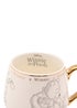 This Disney white ceramic mug features sketch-style illustrations of Winnie the Pooh with Piglet, finished with gold lettering and a matching metallic gold handle. A sweet and timeless design, it’s perfect for adding a little Disney warmth to your daily tea or coffee.