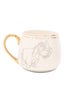 • White ceramic mug with metallic gold handle