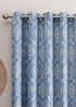A classic, heritage print on a soft blue ground features on this beautiful pair of curtains. The curtains have been made using a special weave that has a blockout yarn woven into the fabric which helps reduce the amount of sunlight entering your room and also helps to prevent heat escaping through the fabric. The curtains are sold in pairs and feature an eyelet heading style which makes them easy to hang and will drape beautifully