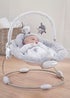 Learn moreThe Counting Sheep Bouncer provides a supportive, cosy place for baby to relax. It's made in soft-touch fabrics with beautiful print and embroidery details, and features a head support cushion for newborns. The toy bar has two sleepy sheep toys, and your baby will enjoy the soothing vibration and music features. It's suitable from birth to around 6 months, or once the child can sit unaided.