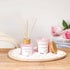 Complete Home Fragrance Gift Set -Includes a reed diffuser, scented candle, wooden display plate, and decorative white pebbles for an elegant home décor experience.