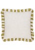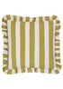 Furn Linen Stripe Printed Ruffle Olive Cushion (50 x 50 x 8 cm)