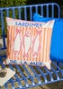 Transform your outdoor space into a Mediterranean haven with this shower-proof reversible cushion. Featuring playful sardines on sunset stripes, it's water-resistant and wipe-clean for effortless alfresco dining. Simply flip to reveal the classic checkerboard reverse with charming fish motifs, perfect for refreshing your look whenever the mood strikes. Durable, practical, and delightfully coastal.