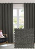 Furn Soft Chenille Blackout Eyelet Curtain Pair Charcoal Grey