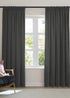 Furn Soft Chenille Blackout Pencil Pleat Curtain Pair Charcoal Grey