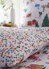 Learn moreAdd some festive cheer to your home with this duvet set features a loving design of families and friends having fun in the snow. Ice-skating with Santa, skiing around snow topped houses, making snow angels and families returning home with their Christmas trees. It is completed with a fun multi coloured polka dot print.
