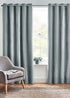 furn. Hudson Herringbone Chenille Eyelet Curtains Duck Egg Blue