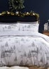 Take a trip to a winter wonderland with the picturesque cottages in a charming forest with woodland animals frolicking in the snow on this duvet set. The neutral tones will add elegance to your festive décor, this features a subtle snowy tree reverse design.