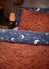 Hubble, bubble toil and trouble! The spellbindingly luxurious Witchy Vibes duvet cover set adds some modern Halloween magic to your bedroom! Designed with eye of newt, stalk of mushroom and head of snake, this set is sure to cast a sleep spell on all who lay in it! Choose from a front design of spellbound icons, botanicals, witchy expressions set on a warm, spicy orange toned background. For two vivid looks in one, the reverse is complete with a midnight sky scene. A quirky seasonal addition for all you budding witches and wizards out there!