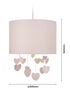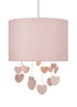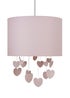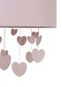 The Glow Hearts Pink Shade with Pink Heart-Shaped Mobiles brings a touch of whimsy and romance to any room with its enchanting design. Featuring a soft pink lamp shade adorned with delicate heart-shaped mobiles, this charming piece creates a sweet and playful atmosphere ideal for children's bedrooms, nurseries, or cozy corners. The heart-shaped mobiles gently sway, adding a dynamic and visually appealing element, while the soft illumination provides a warm, comforting glow. Combining delightful design with practical lighting, the Glow Hearts Pink Shade adds both elegance and a touch of fun to your home décor. Height 36cm x Width 30cm.
