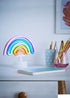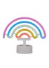 The Glow Rainbow Neon Table Lamp is a vibrant and whimsical lighting piece that adds a splash of color and joy to any room. Featuring a cheerful rainbow design, this battery-powered lamp illuminates your space with a bright and playful glow, perfect for brightening up children's rooms, play areas, or any spot in need of a touch of fun. The neon tubing provides a striking and energy-efficient light, while the cordless design allows for versatile placement without the need for an electrical outlet. Combining delightful design with practical functionality, the Glow Rainbow Neon Table Lamp creates a colorful and enchanting atmosphere in your home. Height 19cm x Width 23cm. Requires 3 x AA batteries, not included.