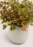 Add a touch of nature-inspired elegance to your home with our charming green shrub in cream vase. This visually striking vase features a captivating arrangement of artificial orange and green shrubs nestled within a sleek and stylish cream ceramic vase. It makes a statement without overwhelming your space.