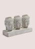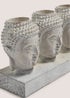 Grey Buddah Trio Head Candle Holder (41x31x39cm)