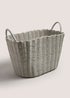 Introducing our Grey Storage Basket, meticulously crafted for both functionality and style. Measuring at 43cm x 40cm x 31cm, this spacious rectangular basket offers ample storage capacity while adding an elegant touch to your decor. The intricate weaving pattern showcases precision and craftsmanship, ensuring durability and robustness. The grey two-tone design exudes contemporary charm, seamlessly blending with various interior styles. Equipped with sturdy handles for easy transportation, this basket is not just a storage solution but also a statement piece that enhances the aesthetic appeal of your space.