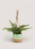 Breathe new life into your living space with this charming artificial plant. The realistic-looking fern plant is housed in a green and natural ceramic pot. The rope hanging feature ensures ease of placement on shelves and walls.