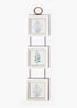 Showcase special memories in style with this triple aperture photo frame. In a rustic white wooden effect finish with glass in the front, it comes with a metallic hanging ring that makes it easy to display in any room. Fits three 3.54 x 3.54in (9 x 9cm) photos. Dimensions: H 51cm x L 13cm x W 1.5cm.