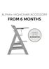 INSTALLED ON THE HIGHCHAIR WITH A SIMPLE CLICK The Alpha Click Tray is one of the many accessories available for the Alpha+ wooden highchair. Thanks to the click system, the tray easily slides on to the grow-along chair with one hand and safely clicks into place – no tools needed – allowing maximum flexibility during mealtimes. Breakfast at the family table, supper on the Alpha Click Tray. Thanks to the easy installation on the highchair, you can spontaneously decide where you want to eat. From 6 months onwards, when your child can sit upright in the Alpha+ chair, you can begin to use the Alpha Click Tray. The spacious tray table offers space for plates, cups etc, whilst the elevated edge stops the food and toys from falling. On the Alpha Click Tray, your child can eat and play wherever you prefer, be it in the kitchen, living room or on the balcony. The light and durable tray slides on the wooden highchair with one hand, which is ideal for when the other hand is already occupied. After mealtime, the tray can be easily cleaned thanks to its smooth surface until you need it again.